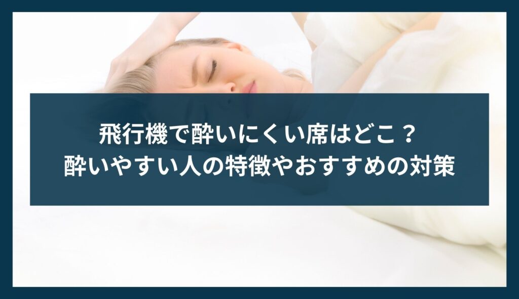 飛行機での旅行は便利ですが、乗り物酔いしやすい人にとっては不安の種でもあります。車や船と同様に揺れによって気分が悪くなる「飛行機酔い」に悩む方も少なくありません。「飛行機に乗るといつも酔う」「機内で気持ち悪くなったらどうしよう」と心配な... -