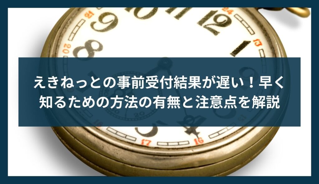 新幹線や特急の指定席券を確保する際に便利な「えきねっとの事前受付」ですが、受付結果がなかなか通知されず遅いと感じたことはありませんか? 繁忙期に重要な切符を申し込んだ場合、結果がわからないまま長時間待つのは不安ですよね。この記事では、えき... -