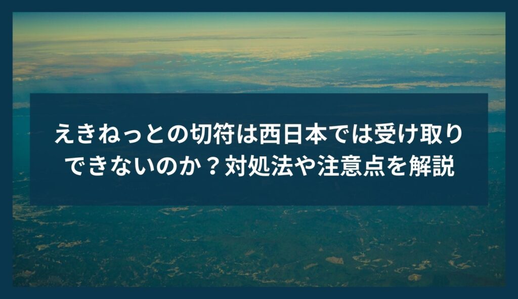 JR東日本が提供するオンライン予約サービス「えきねっと」は、東日本エリアでの列車予約にとても便利なシステムです。しかし、西日本在住の方や西日本発着の旅行を計画している方からは、「えきねっとで予約した切符は西日本では受け取れないのか?」とい... -